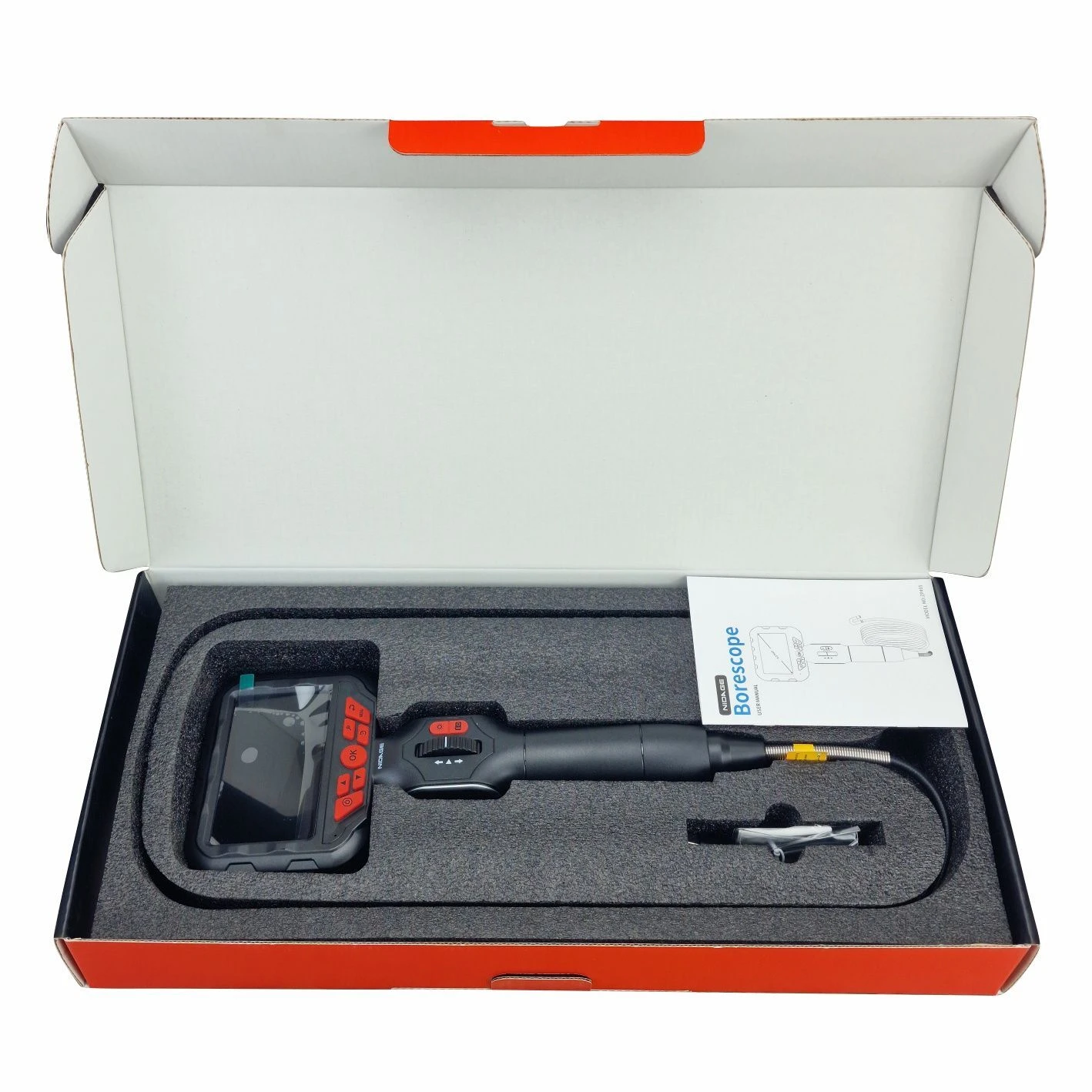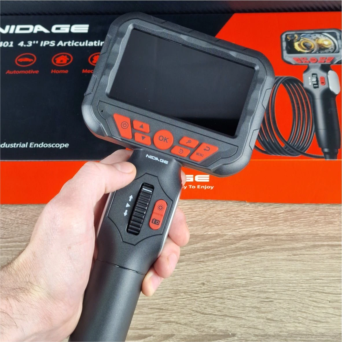 Бороскоп (відеоскоп) для двигунів Nidage A43 — це шарнірний бороскоп середнього та високого класу. Nidage A-43 оснащений 4,3-дюймовим HD-дисплеєм і має шарнірну конструкцію з кутом повороту 210°, що полегшує роботу в обмеженому просторі автомобіля. Бороскоп оснащений потужним акумулятором високої ємності 2800 мАг, що забезпечує тривалий час роботи. Він підтримує 8 мов і має вбудовану карту пам'яті 32 ГБ, що робить його незамінним інструментом для точних і надійних перевірок.